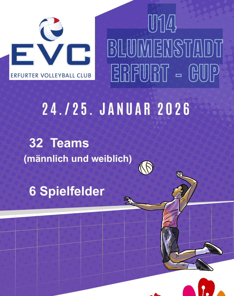Der EVC lädt zum U14 Blumentstadt Erfurt – CUP ein – ein internationales Volleyballturnier für den Jahrgang 2013 und jünger.